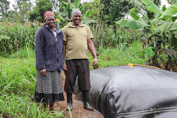 Photo: A smallholder farmer in a rural village receiving biogas for cooking and biofertilizer for cultivation from a biodigester – Sistema.bio