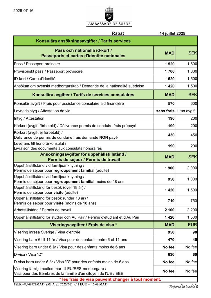 Il est aussi possible de payer par virements ou versements bancaires le même mois du dépôt du dossier, toujours avant le rendez-vous, dans le compte bancaire de l'Ambassade, BMCE 0118 1000 0003 2000 0290 4992. Veuillez apporter le recu original à l'Ambassade lors de votre rendez-vous. Les paiements en espèces d'un montant exact sont aussi acceptés dans certains cas.