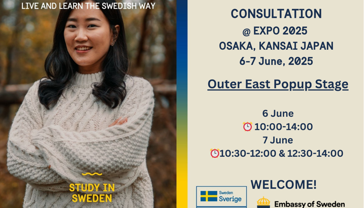 Study+Work in Sweden スウェーデン留学+キャリアフェア@大阪・関西万博内北欧パビリオン6月7日は大阪・関西万博内にある北欧パビリオンで「スウェーデン留学+キャリアフェア」を開催する運びとなりました。