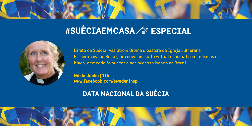 Direto da Suécia, Åsa Ström Broman, pastora da Igreja Lutherana Escandinava no Brasil, promove um culto virtual especial com músicas e hinos, dedicado às suecas e aos suecos vivendo no Brasil. Clique aqui acessar o link com transmissão com interpretação simultânea.
