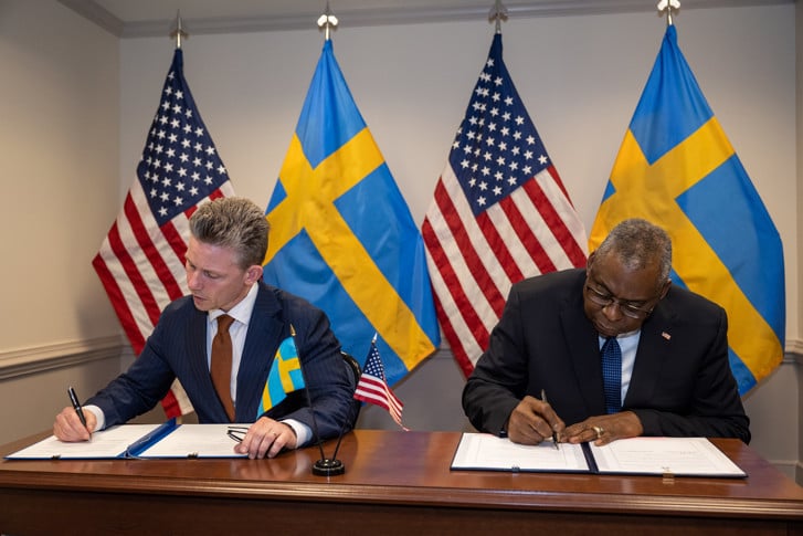 Sverige och USA har genom försvarsminister Pål Jonson och försvarsminister Lloyd J. Austin III undertecknat ett försvarssamarbetsavtal som betyder att länderna kommit överens om förutsättningarna för amerikanska styrkor att verka inom Sverige.